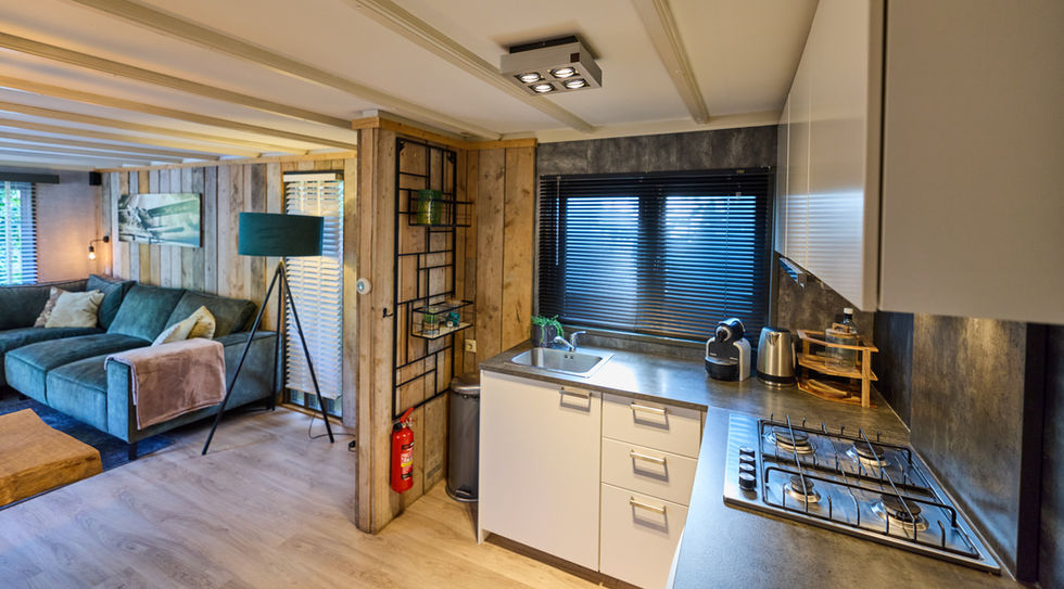 Het huisje is van alle gemakken voorzien, zoals een Nespresso koffiemachine, oven, magnetron, waterkoker. Er is ook een sfeerhaard op elektriciteit met echte sfeervlammetjes.